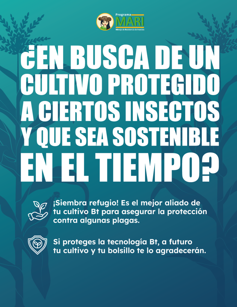 MARI es el programa de Manejo de Resistencia de Insectos, conocido como MRI o IRM. El programa esta enfocado en el manejo y gestión responsable de cultivos transgénicos con la tecnología de protección contra insectos. Su objetivo es retrasar la generación de resistencia en las poblaciones de la plaga expuestas a la herramienta control y así aprovechar al máximo de sus beneficios.